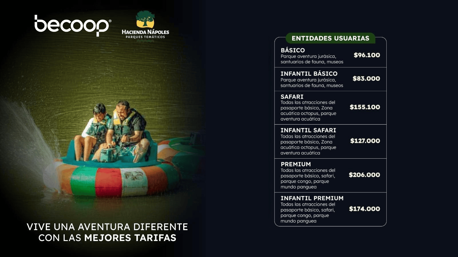 - Tarifas con descuentos especiales para las diferentes entradas ofrecidas por La Hacienda Nápoles